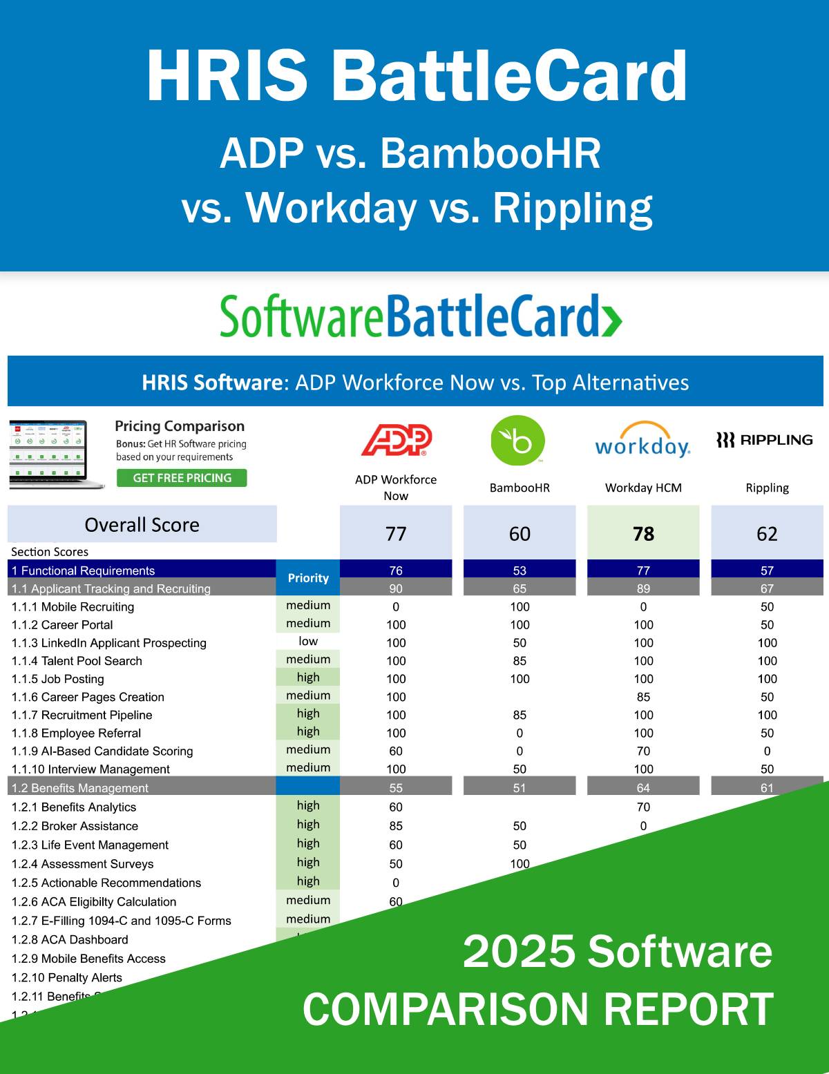 HRIS Systems BattleCard - ADP Workforce Now vs. BambooHR vs. Workday HCM vs. Rippling