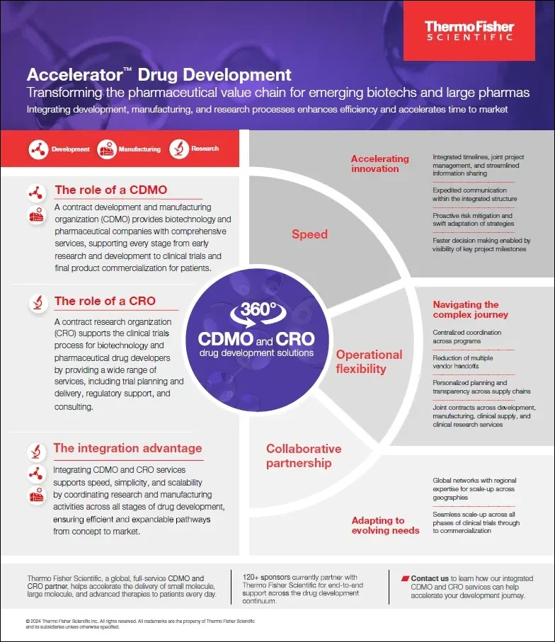 Our new infographic explains the benefits of working with an end-to-end, integrated CDMO and CRO partner that provides a wide range of innovative research, development, and manufacturing capabilities. It also illustrates how a single, centralized vendor can offer improved simplicity, speed, and scalability on the journey from molecule to medicine to market.